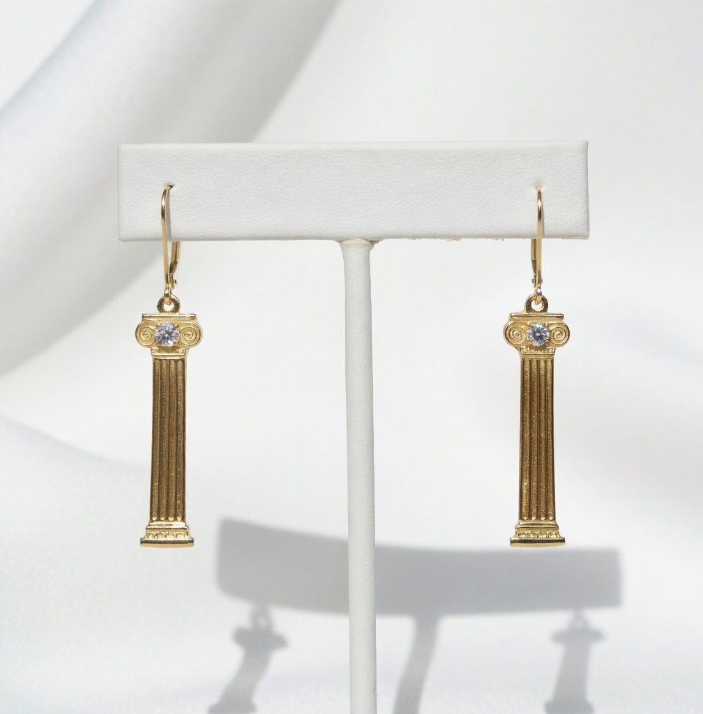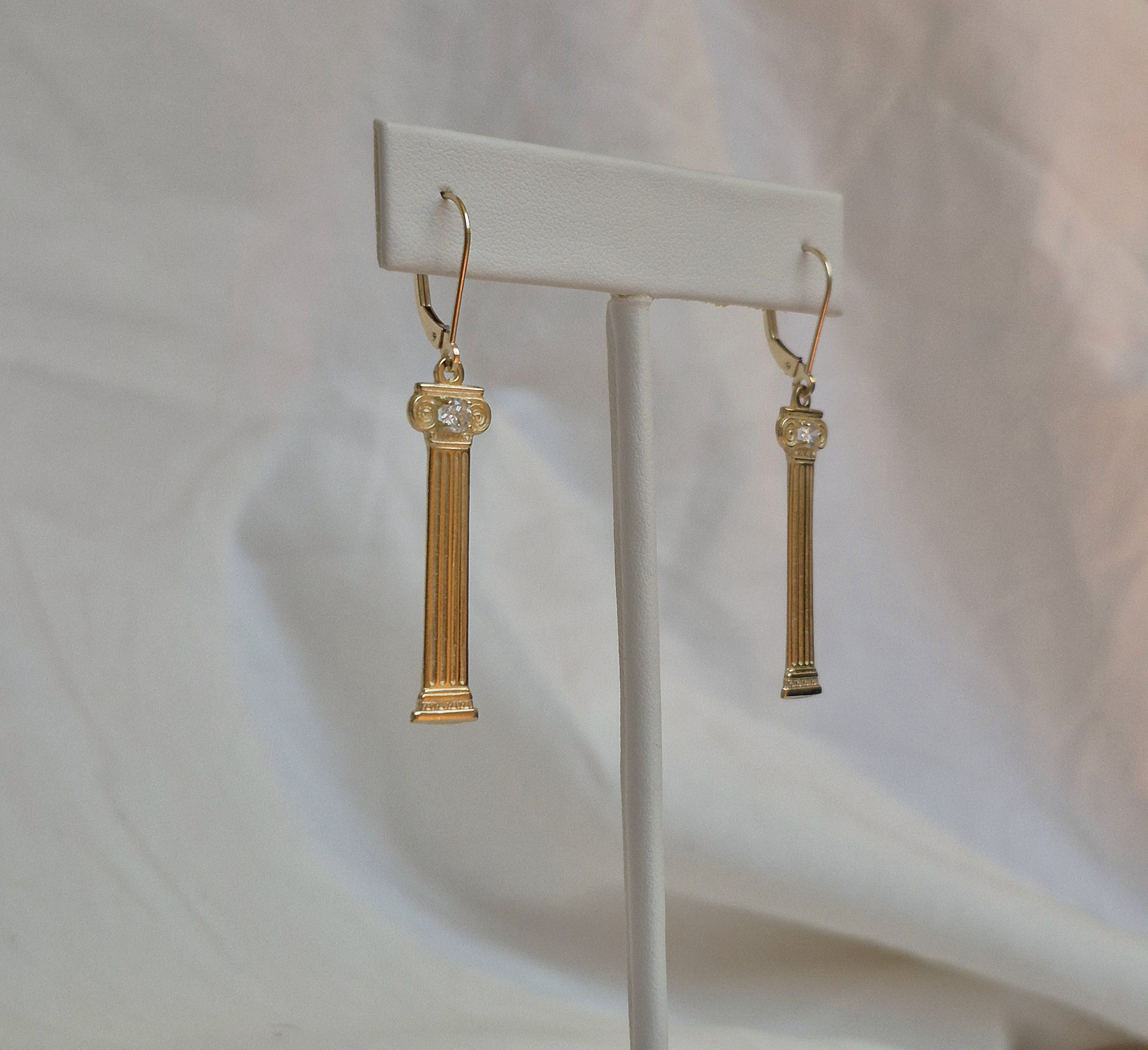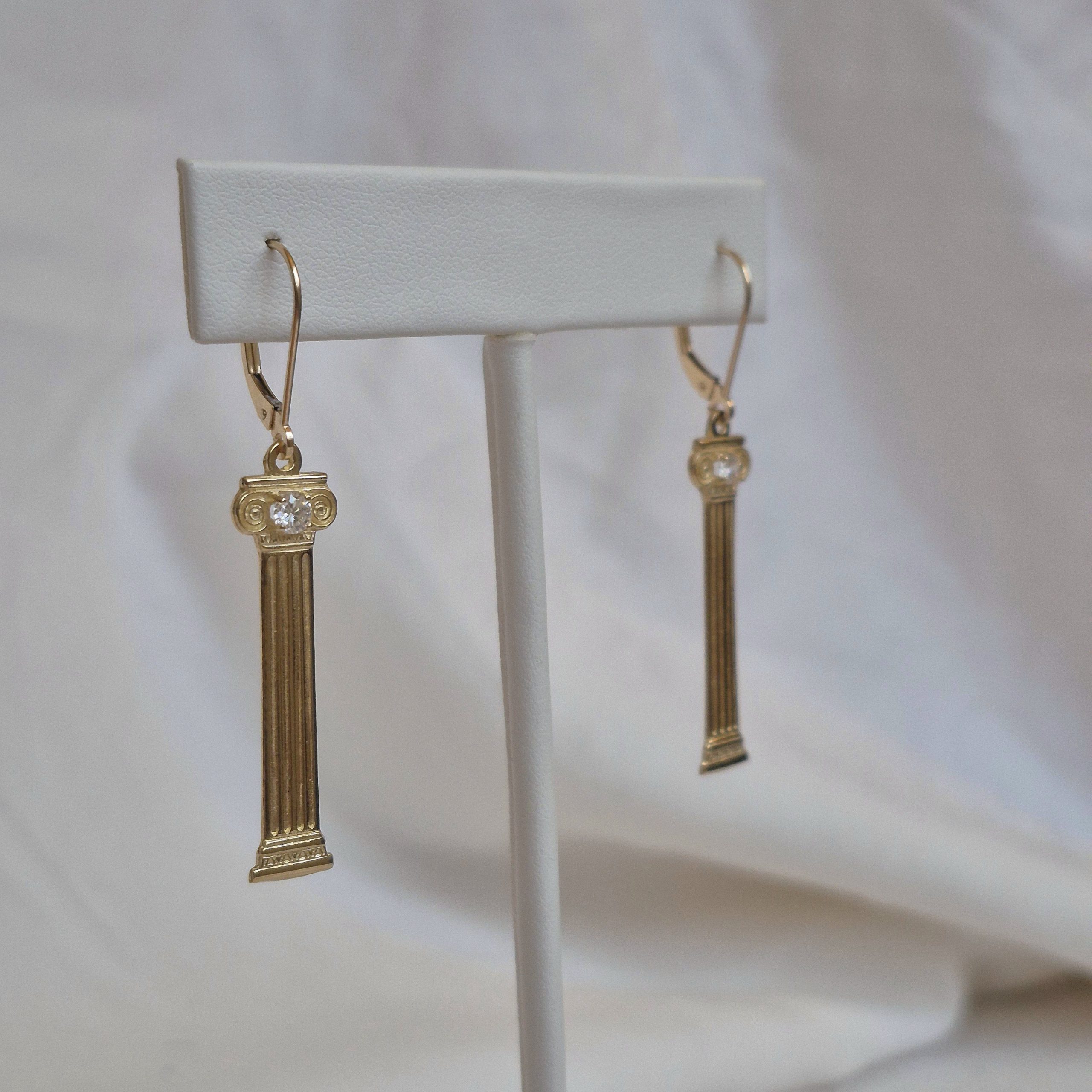 14K Column Earrings with Diamonds