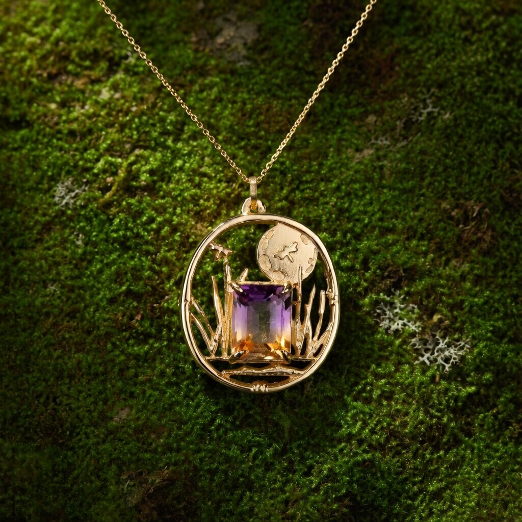 Orchid Earrings in 14K Gold with Diamonds and Amethysts