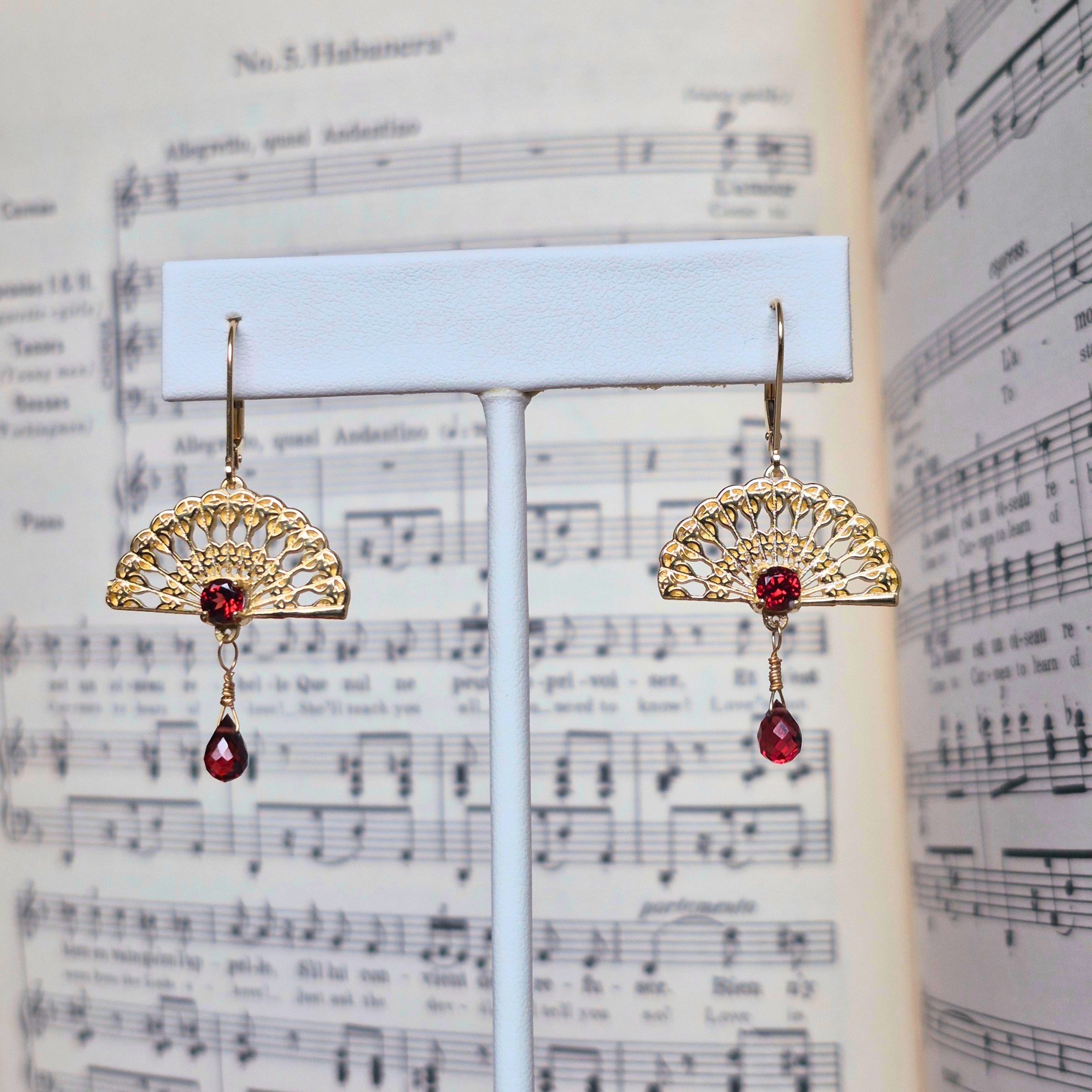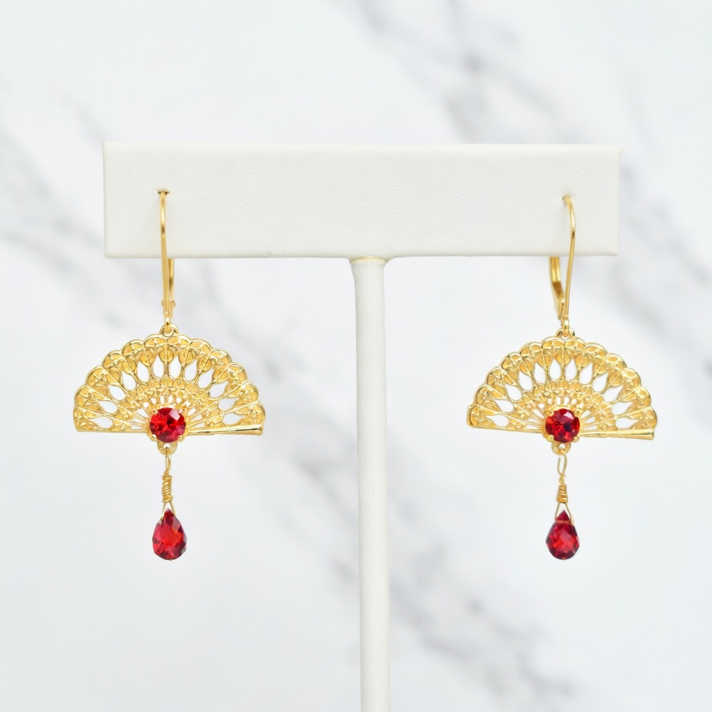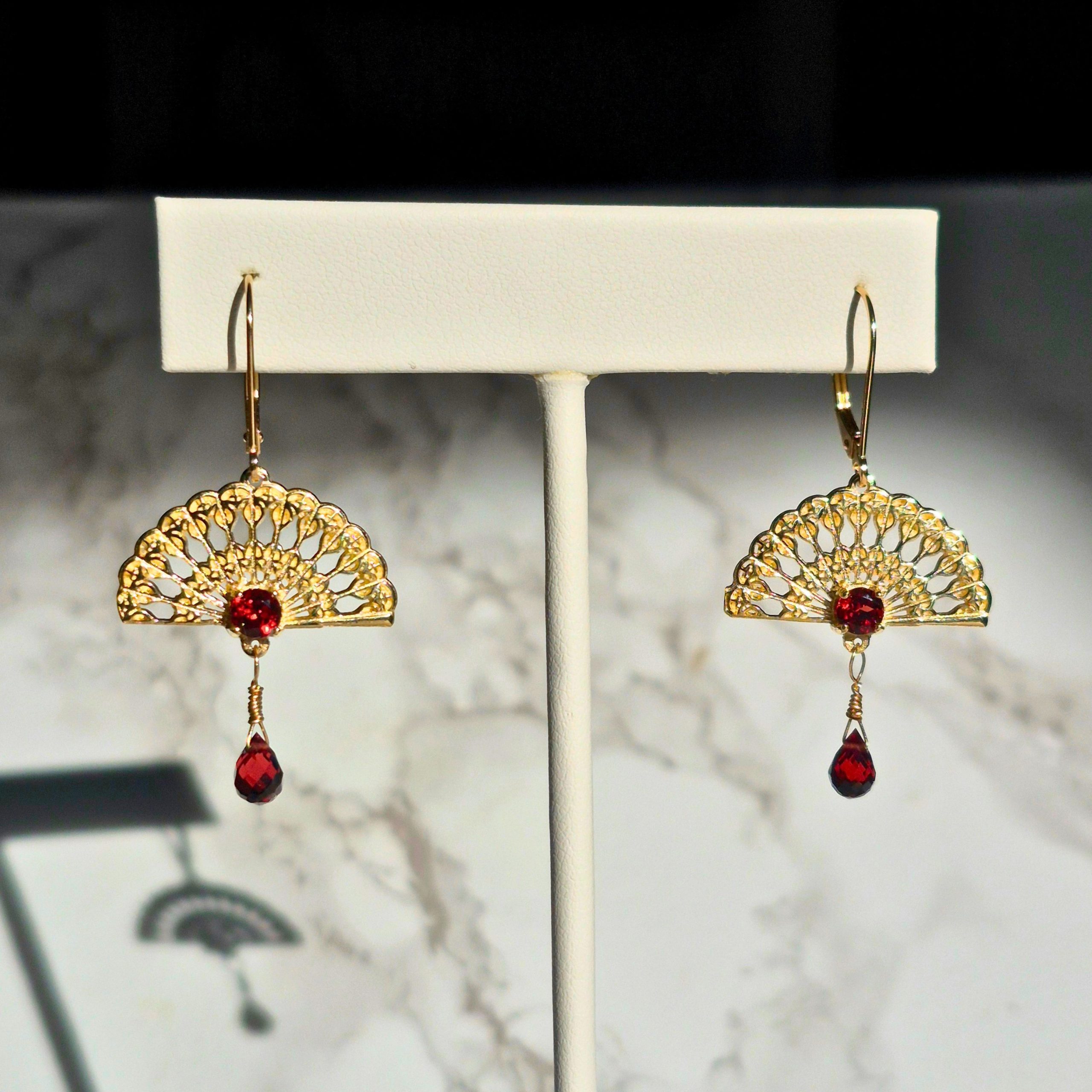 Fan Earrings 14K with Garnet