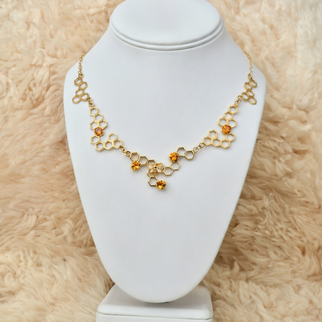 Honey Bee Tie Bar with Citrine in Sterling Silver