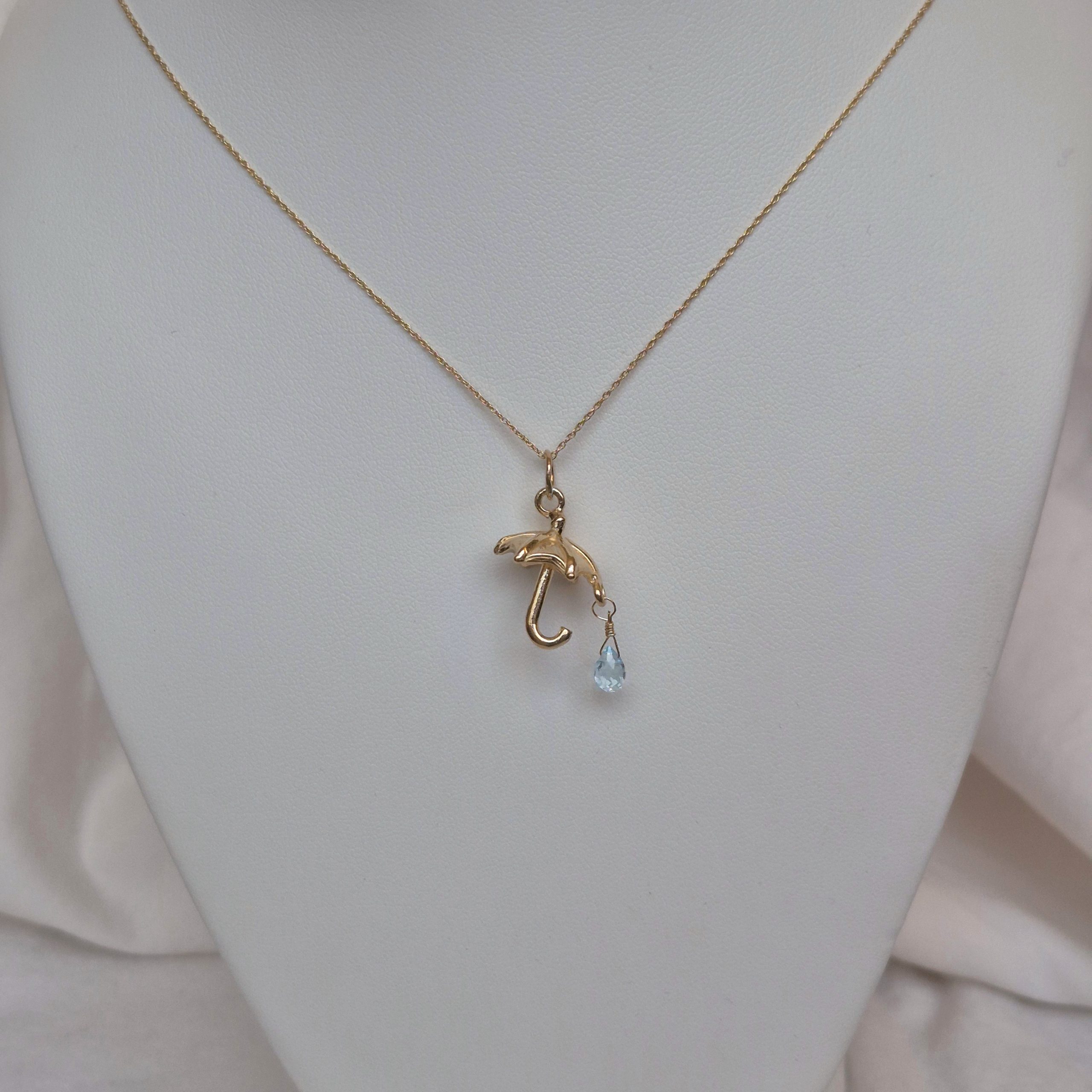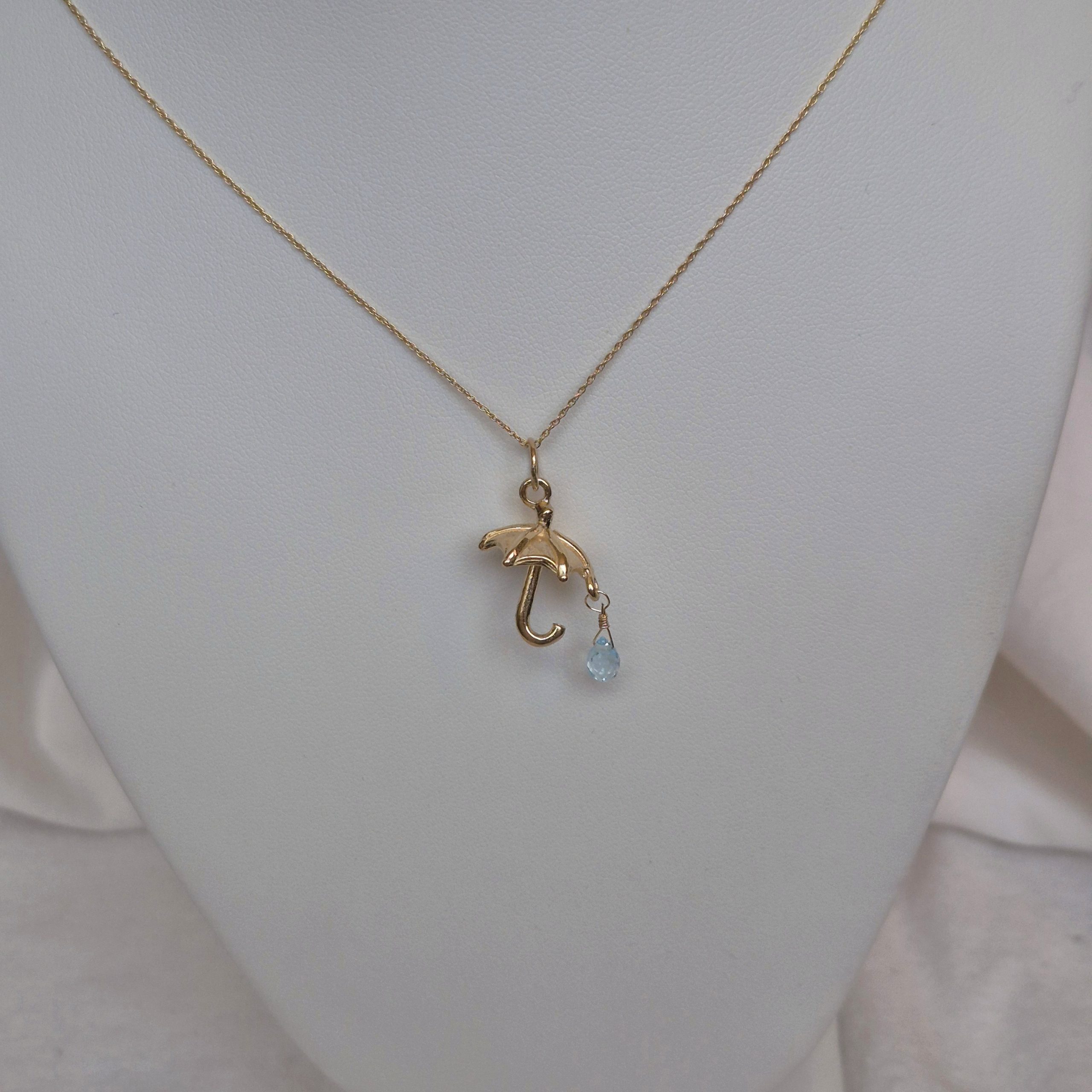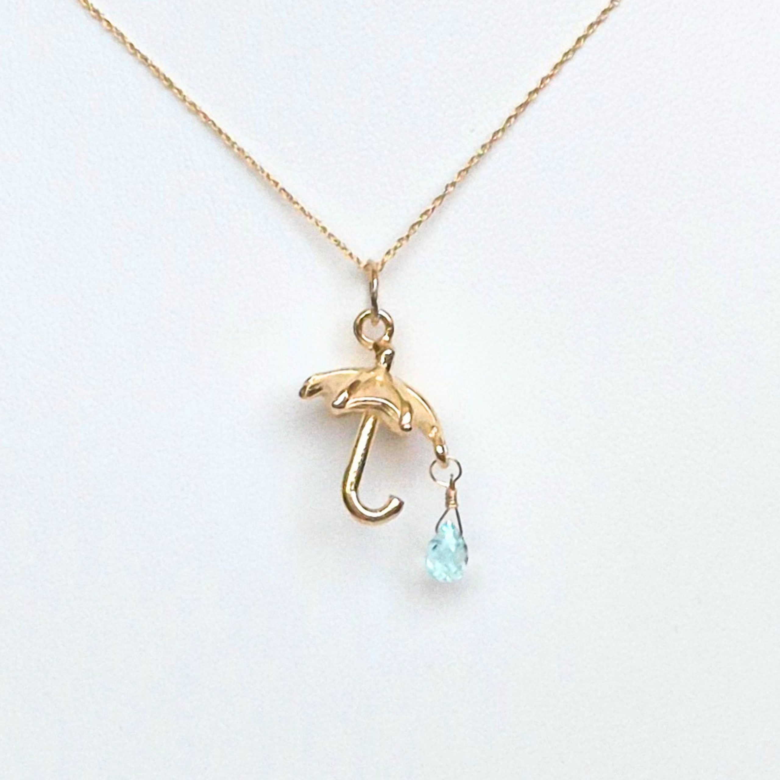 Umbrella necklace with Blue Topaz in 14K Gold